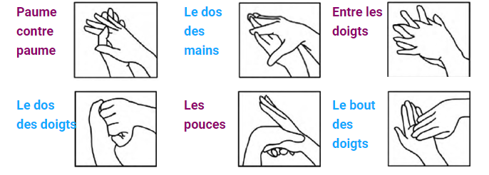 Voici les six étapes du lavage des mains (voir images ci-dessous)