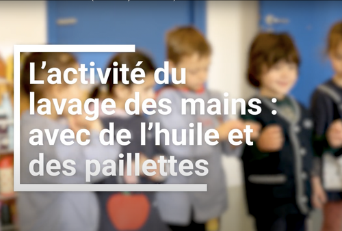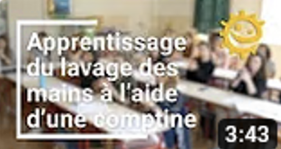 Dans cette vidéo des enfants de moyenne section s'exercent à bien se laver les mains de façon ludique. L'apprentissage de la comptine du lavage des mains sert de moyen mnémotechnique pour enchaîner les gestes. L'usage de peinture à la place du savon permet aux enfants de visualiser les zones restées sans savon et donc mal lavées. Une activité qui leur permet de prendre conscience de l'importance de bien se laver les mains pour rester en bonne santé.
